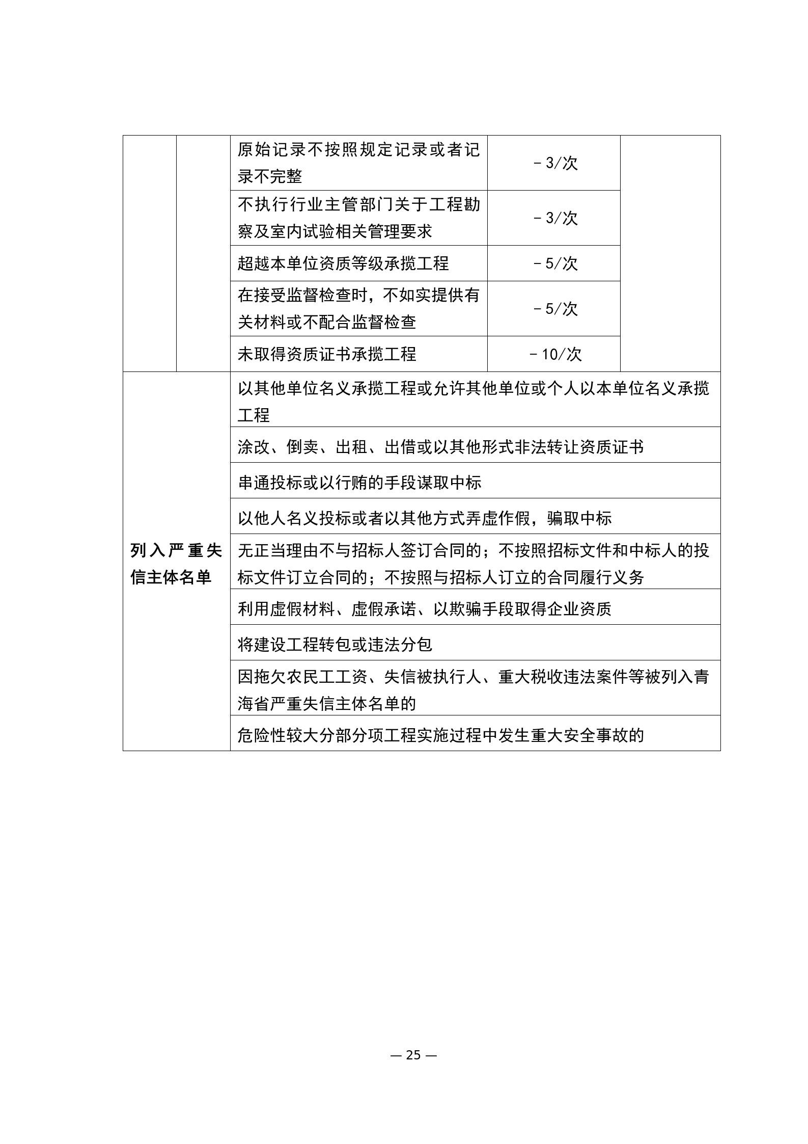本省企業(yè)和從業(yè)人員取得相應(yīng)等級的資質(zhì)資格證書,外省進(jìn)青企業(yè)進(jìn)青登記通過審核后,建筑市場各方主體和從業(yè)人員的基礎(chǔ)分為100分。